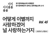 (비전21뉴스) 경기도와 경기문화재단이 12월을 맞아 올해를 마무리하는 문화예술교육 비평웹진 〈지지봄봄〉 45호를 발행했다. ‘어떻게 이별까지 사랑하겠어, 널 사랑하는 거지’를 제목으로 한 이번 호는 현장의 지속가능성, 행정 구조의 과제, 비평의 역할 등 문화예술교육이 직면한 주요 쟁점을 깊이 있게 다룬다. 먼저, 기획자 유모라의 글 '예술인으로 존재하고 연대하기 위하여 - 홍우주 예술학교 A.L.T.O. 탄생기'는 11년 차 홍우주사회적협동조합이 ‘홍대앞 정신’을 잇기 위해 시작한 ‘예술학교 A.L.T.O.’의 배경과 의미를 조명한다. 파일럿 프로그램을 통해 확인한 연대의 가능성과 함께, 홍우주가 그리는 지속 가능한 지역 문화예술 생태계를 탐색한다. ‘게릴라노동자들’의 대담 '문화재단 실무자 탈출기 - 『나라를 위해서 일한다는 거짓말』 함께 읽기'에서는 전 문화재단 실무자들이 공직사회의 조직 문화와 업무 환경을 돌아본다. 노한동의 책을 매개로 공공 조직의 현실을 비판적으로 되짚고, 여전히 현장에서 고군분투하는 실무자들에게 연대와 응원의 메시지를 전한다. 광주광역시 청소년삶디자인센터 김소연 기획실장 인터뷰 '이