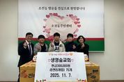 (비전21뉴스) 의왕시 오전동에 위치한 생명숲교회가 11월 7일, 어려운 이웃을 돕기 위해 성금 30만 원과 라면 75개를 오전동주민센터에 기부하며 지역사회에 따스한 온정을 전했다. 이번 기부는 교회가 매년 꾸준히 이어오고 있는 나눔 실천 활동 중 하나로 추진됐으며, 소외된 이웃들에게 작은 힘이라도 보태고자 하는 교인들의 정성을 모아 마련됐다. 왕한상 담임목사는 “작은 정성이지만 어려운 이웃들에게 이번 기부가 도움이 되길 바란다”며 “앞으로도 지역사회와 함께 성장하며 나눔을 이어가는 교회가 되겠다”고 전했다. 신화정 오전동장은 “매년 이어지고 있는 생명숲교회의 따뜻한 나눔에 깊이 감사드린다”며 “기부된 성금과 물품은 도움이 필요한 지역 내 저소득층에게 전달하겠다”고 말했다.