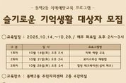 (비전21뉴스) 용인특례시 기흥구 동백2동은 10월 14일부터 28일까지 3주간 진행하는 치매 예방 프로그램 ‘슬기로운 기억생활’ 참여자를 모집한다고 22일 밝혔다. 프로그램은 10월 14일 1차 교육인 ‘알쏭달쏭한 치매예방교육’을 시작으로 10월 21일 2차 교육인 ‘보이스피싱 예방법’이 진행된다. 3차 교육은 10월 28일 ‘힐링 레크리에이션(실버체조)’가 이어진다. 교육은 동백2동 지역사회보장협의체의 분야별 전문가 위원들의 재능 기부로 운영되며, 어르신의 인지 기능 증진과 정서적 안정, 삶의 활력 증진을 위해 기획했다. 모집 대상은 지역내 65세 이상 주민 30명이다. 신청 방법은 동 행정복지센터 방문 또는 전화를 통해 선착순 모집한다. 동백2동 관계자는 “이번 프로그램은 어르신들이 건강하고 행복한 생활을 할 수 있도록 지역사회 구성원들이 함께 한다”며 “앞으로도 지역 맞춤형 복지사업을 발굴해 주민 삶의 질 향상에 노력할 것”이라고 말했다.