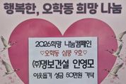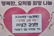 (비전21뉴스) 여주시 점동면에 소재한 ㈜성건은 지난 5일 오학동행정복지센터를 방문하여 지역 내 어려운 이웃을 위한 성금 50만 원을 기탁했다. ㈜성건은 토공사업, 포장공사업, 상·하수도 설비공사업, 석면 해체·제거업 등을 영위하는 지역 기업으로, 지난해에 이어 올해도 이웃돕기 성금을 기탁하며 지역사회 나눔문화 확산에 앞장서고 있다. 김성현 대표는 “작은 정성이지만 어려운 이웃들에게 조금이나마 도움이 되길 바라는 마음으로 성금을 기탁하게 됐다”며 “앞으로도 지역사회와 함께하는 기업으로서 지속적인 나눔을 실천하겠다”고 말했다. 이에 김병선 오학동장은 “지난해에 이어 올해도 따뜻한 나눔을 실천해 주신 김성현 대표님께 감사드린다”며 “기탁해 주신 성금은 도움이 필요한 관내 취약계층을 위해 소중히 사용하겠다”고 전했다. 한편, 이날 기탁된 성금은 오학동 지역 내 어려운 이웃을 위한 복지사업에 사용될 예정이다.