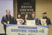 (비전21뉴스) 수원시 영통구보건소가 질병관리청 주관 ‘2025년 감염병 매개체 관리 평가회’에서 감염병 매개체 방제 유공 부문 질병관리청장상을 받았다. 평가회는 2일 수원컨벤션센터에서 열렸다. 영통구보건소는 수원시 감염병 매개모기 감시사업, ‘모기 없는 마을만들기’ 등 지역 맞춤형 예방 사업을 꾸준히 운영했다. 또 전국에서 처음으로 감염병 매개체 전담 인력을 채용해 지속적인 감시와 방제 활동을 추진했다. 특히 영통구에서 시작한 ‘모기 없는 마을만들기’ 사업을 수원시보건소 전체로 확대한 뒤 교육 체계를 마련해 지역 내 매개체 감염병 예방 기반을 강화했다. 이민희 영통구보건소장은 “앞으로도 전문성과 체계성을 갖춘 매개체 감염병 관리로 시민 건강 보호와 지역 내 감염병 확산 방지에 최선을 다하겠다”고 말했다.