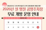 (비전21뉴스) 안성시시설관리공단은 2026년 설 명절을 맞아 2월 14일부터 18일까지 5일간, 공단이 관리하는 공영주차장 중 전통시장 인근에 위치한 석정동 공영주차장과 동본동 공영주차장을 한시적으로 무료 개방한다고 밝혔다. 이번 무료 개방은 설 명절 기간 동안 전통시장 방문객 증가가 예상됨에 따라 주차공간 부족으로 인한 불편을 해소하고 보다 많은 시민이 전통시장과 인근 상권을 편리하게 이용할 수 있도록 지원하기 위해 추진됐다. 무료 개방되는 공영주차장 2개소를 제외한 나머지 주차장은 기존과 동일하게정상 유료 운영하며 이를 통해 주차 수요를 분산하고 교통 혼잡을 최소화하는 등 효율적인 주차장 운영을 도모할 계획이다. 또한, 안전사고 예방을 위해 차단기는 개방하지 않고 현장 안내 및 순찰을 강화하여 안전하고 질서 있는 주차 환경을 유지할 방침이라고 밝혔다. 이정찬 이사장은 “설 명절을 맞아 전통시장을 찾는 사람들이 주차 걱정 없이장을 보실 수 있도록 무료 개방을 결정했다.”며 “앞으로도 공영주차장의 공공성을 강화하고 지역경제 활성화에 기여할 수 있는 운영방안을 지속적으로 마련하겠다.”고 말했다.