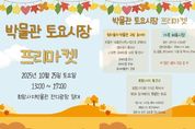 (비전21뉴스) 양주시립회암사지박물관이 오는 25일 오후 1시부터 5시까지 가을을 맞아 “박물관 토요시장” 프리마켓을 운영한다. “박물관 토요시장”은 2017년부터 꾸준히 운영된 시민 참여형 프리마켓으로 양주 회암사지와 박물관의 다양한 모습을 시민들과 공유하고 있다. 이번 프리마켓은 박물관에서 지원·운영하는 ▲‘엄마들의 박물관 규방 동아리’존, ▲북크닉 존, ▲아트북 만들기, ▲삐에로 풍선아트, ▲사진찍기 이벤트, ▲ 펫티켓 캠페인과 강연까지 보다 풍성한 즐길거리를 선보일 예정이다. 또한 시민참여 ‘가족 벼룩시장’ 존이 운영되어 다양한 볼거리와 체험 거리를 제공할 예정이며 전화 신청을 통해 선착순 30팀을 모집한다. 시 관계자는 "주말 저녁 가족과 함께 박물관 토요시장을 즐기며 회암사지의 아름다운 경치와 다양한 문화 체험으로 뜻깊은 시간을 보내시길 바란다"고 전했다.