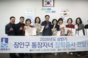 (비전21뉴스) 수원시 장안구는 지난 25일, 지역 사회 발전을 위해 행정 최일선에서 헌신하고 있는 통장들의 노고를 격려하기 위해 ‘2026년 상반기 통장자녀 장학증서 전달식’을 개최했다고 밝혔다. 이번 장학증서 전달식에는 이일희 장안구청장을 비롯해 고윤기 장안구 통장협의회 회장과 장학생 자녀가 선발된 통장 등 12명이 참석했다. 2026년 상반기 장학금은 지역 내 모범적인 통장 자녀 10명에게 총 950만원이 지급되며, 이날 행사에는 학업 일정 등으로 바쁜 자녀들을 대신해 부모인 통장들이 직접 참석하여 구청장으로부터 장학증서를 수여받고 동료 통장들과 기쁨을 함께 나누는 뜻깊은 시간으로 진행됐다. 이일희 장안구청장은 “주민들을 위해 묵묵히 땀 흘리시는 통장님들의 헌신과 봉사가 있었기에 지금의 장안구가 존재할 수 있었다”며 “오늘 전달된 장학금이 자녀들의 꿈을 향한 힘찬 발걸음에 작은 밑거름이 되기를 바란다”고 말했다. 한편, 장안구 통장자녀 장학금은 구정 발전에 기여해 온 통장들의 사기를 진작하고, 그 자녀들이 지역 사회를 이끌어갈 우수한 인재로 성장할 수 있도록 돕기 위해 매년 상·하반기로 나누어