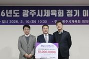 (비전21뉴스) 광주시에 소재한 ㈜대광레미콘 진성재 대표가 지역 체육 발전을 위해 광주시체육회에 기부금 1천만 원을 전달했다. 기부금 전달식은 지난 10일 광주시 G-스타디움 내 광주시체육회 대회의실에서 열린 2026년 제1차 정기 이사회 중 진행됐으며 체육회 관계자들이 참석한 가운데 이뤄졌다. 이번 기부금은 지역 체육 활성화와 선수 육성, 체육 환경 개선 등 광주시 체육 진흥을 위한 사업에 활용될 예정이다. 진성재 대표는 “지역 체육이 건강하게 성장하는 데 조금이나마 보탬이 되길 바란다”며 “앞으로도 지역 사회와 함께하는 나눔과 상생을 지속적으로 실천해 나가겠다”고 말했다. 이에 대해 박범식 광주시체육회장은 “지역 체육 발전을 위해 따뜻한 나눔을 실천해 주신 진성재 대표와 ㈜대광레미콘에 감사드린다”며 “기부의 뜻이 현장에서 실질적인 성과로 이어질 수 있도록 책임감 있게 활용하겠다”고 밝혔다. 한편, 광주시체육회는 앞으로 민관 협력을 통해 지역 체육 기반을 강화하고 시민 누구나 체육 활동에 참여할 수 있는 환경 조성에 주력할 방침이다.
