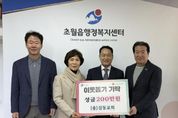 (비전21뉴스) 광주시 초월읍 선동리에 위치한 삼동교회는 지난 12일 경기 사회복지공동모금회를 통해 성금 200만 원을 초월읍에 기탁했다. 이번에 기탁된 성금은 초월읍 지역 내 저소득 가구 등 취약계층 지원에 사용될 예정이다. 오병철 담임목사는 “지역의 어려운 이웃들이 조금이나마 따뜻한 일상을 보내는 데 도움이 되길 바란다”며 “앞으로도 지역사회와 함께하는 교회가 되도록 노력하겠다”고 말했다. 이에 대해 이학순 읍장은 “따뜻한 나눔을 실천해 주시는 삼동교회에 깊이 감사드린다”며 “기탁해 주신 성금은 도움이 필요한 이웃들에게 소중히 전달하겠다”고 밝혔다.
