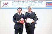 (비전21뉴스) 안양시는 최대호 시장이 지난 17일 오전 11시40분 안양시청 3층 접견실에서 호르헤 엔리케 발레리오 에르난데스 주한코스타리카 대사와 코스타리카 커피 산업을 총괄하는 공식 연구·관리 기관인 코스타리카 커피연구소(ICAFE) 대표단을 접견하고, 양국 지방정부 간 실질적 교류 확대 방안을 논의했다고 18일 밝혔다. 이번 접견은 지난 7월 말 최대호 안양시장이 전국사회연대경제지방정부협의회 소속 지자체장들과 함께 코스타리카를 방문해 스테판 브루너 제1부통령, 호르헤 발레리오 주한코스타리카 대사 등 정부 관계자와 만나 지속가능한 지역발전과 상생 경제 실현을 위한 정책을 논의한 데 따른 후속 교류 일정이다. 이날 최대호 시장은 환영 인사에서 “한국과 코스타리카의 수교 63주년이자 코스타리카 독립 204주년을 맞는 뜻깊은 해에 이렇게 다시 만나게 되어 더욱 의미가 깊다”며 “지리적으로 멀리 떨어져 있지만 상호 존중과 신뢰를 바탕으로 동반자적 협력을 이어가자”고 강조했다. 이에 주한코스타리카 대사는 안양시의 따뜻한 환대에 감사를 표하며 “코스타리카와 한국 양국 관계가 더욱 공고해지는 만큼, 안양시와도 커피,