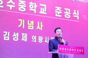 (비전21뉴스) 의왕시 백운밸리 지역에 신설된 백운호수중학교의 준공식이 24일 백운호수중학교 체육관에서 개최됐다. 의왕백운프로젝트금융투자(주)(의왕백운PFV(주)) 주최로 열린 이날 준공식에는 김성제 의왕시장, 임태희 경기도 교육감, 김학기 의왕시의회 의장과 도·시의원, 의왕백운피에프브이(주) 김양묵 대표이사, 의왕백운밸리에이엠시(주) 이성훈 대표이사 등 주요 내빈과 지역주민 400여 명이 참석해 자리를 빛냈다. 이번 준공식은 학교 설립을 위해 힘써 온 관계자와 지역 주민들이 한 자리에 모여 그동안의 결실을 함께 나누고 축하하는 뜻깊은 행사로 마련됐다. 의왕시 백운밸리 일대는 주거단지 조성과 함께 인구가 지속적으로 증가하고 있는 지역으로, 그간 중학교 부재에 따른 학생들의 원거리 통학 문제가 꾸준히 제기돼 왔다. 이에, 시는 ‘중학교 신설’이라는 지역 숙원사업 해결을 위해 다각적인 방안을 검토해 왔으며, 2023년 11월 의왕시·군포의왕교육지원청·의왕백운피에프브이(주) 간 3자 업무협약을 체결함으로써 학교 설립이 본격 추진됐다. 협약을 통해 시에서는 백운호수 초등학교 인접 유치원 부지를