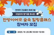 (비전21뉴스) 파주보건소는 시민들의 건강한 삶을 위한 한의약 건강 증진 프로그램인 ‘한방이어락(樂) 숲속 치유교실(힐링 클래스)’을 오는 25일 10시부터 12시까지 율곡수목원에서 운영한다. 이번 프로그램은 자연 속에서 가족이 함께 건강을 되돌아보고, 숲에서의 명상과 호흡을 통해 스트레스를 해소하고자 기획됐다. 참가자들은 수목원의 맑은 공기와 아름다운 풍경 속에서 지친 몸과 마음을 회복하는 시간을 갖게 된다. 주요 내용은 ▲구절초 숲길 산책 ▲자연 속에서 가족과 추억 만들기 ▲구절초 차 마시기 등 구절초를 주제로 한 다양한 활동으로 구성되어 있다. 신청은 파주시 평생교육포털 누리집(lll.paju.go.kr)을 통해 가능하며, 가족 단위로(4~6가구, 총 20여 명) 선착순 모집한다. 단, 신청 가구가 많을 경우 3대 가족을 우선 선발한다. 이한상 파주보건소장은 “자연과 함께하는 치유 프로그램을 통해 가족 간 유대감을 높이고, 건강한 생활 습관을 기를 수 있는 계기가 되길 바란다”라며 “많은 시민들의 적극적인 참여를 기대한다”라고 밝혔다.